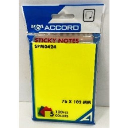 POST-IT 76×102 – 5 Couleurs – 100 Feuilles – Fluo Accord
